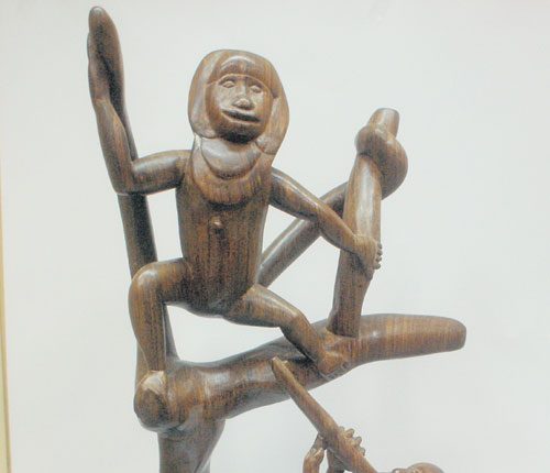 Piezas decorativas que realzan el trabajo de una etnia. Son figuras de madera y talladas a mano.