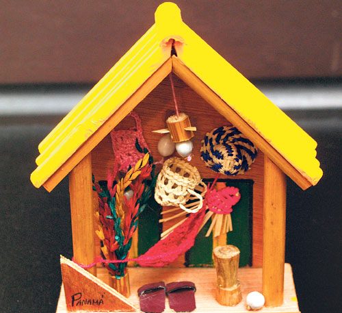 Otros accesorios muy panameños son las casas de madera, que simulan portales de la campiña, con pilones, hamacas y cestos de paja o junco. Su trabajo es tan minucioso y delicado, que usted quedará prendado del realismo con que se trabajan.
