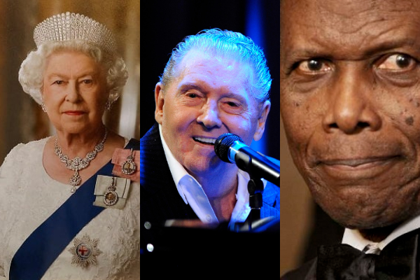 La reina Isabel II, Jerry Lee Lewis y Sidney Poitier. Fotos: Archivo / EFE