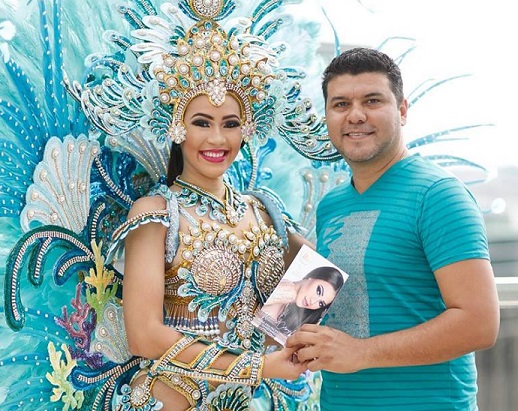Kilmara Carvajal luciendo el traje junto al diseñador Daniel Cortina. Tomado de Facebook