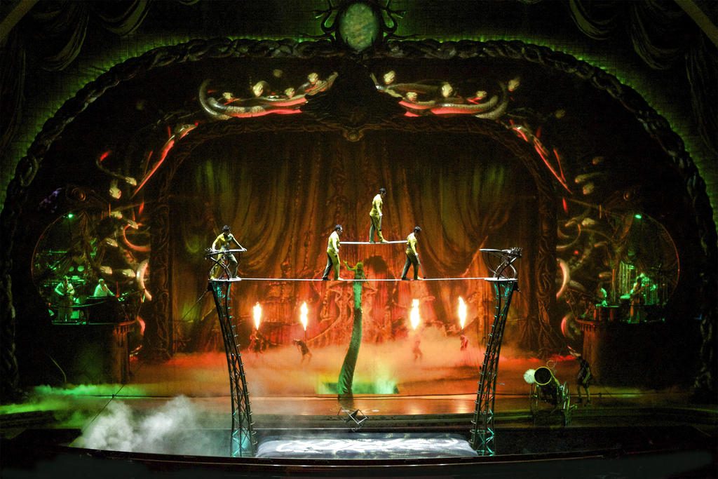 El espectáculo escrito y dirigido por Dominic Champagne cuenta con más de 55 artistas de 27 nacionalidades diferentes y para su montaje son necesarios 130 trajes y un bosque con más de 300 "árboles".