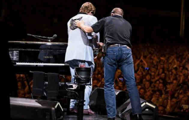 "Lo siento, lo siento mucho", dijo entre lágrimas la estrella del pop, Elton John que unas horas antes del concierto había sido diagnosticado con neumonía atípica.