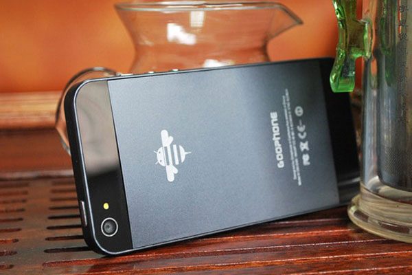 En apariencia, las diferencias entre ambos teléfonos radican tan sólo en el símbolo de la carcasa trasera que, en el modelo chino, en lugar de ser una manzana, es una avispa con alas desplegadas, según se aprecia en las fotografías que han circulado del "Goophone i5" por internet.