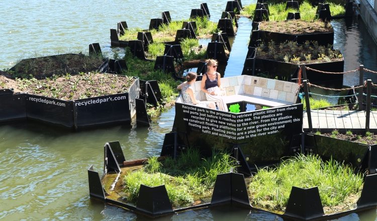 "Este proyecto confiere al plástico una función nueva y positiva, al utilizar sus residuos como material de construcción para un parque flotante, que es un paraíso verde en una antigua zona portuaria con un muelle pedregoso, un nuevo paisaje vegetal que ahora puede disfrutarse y cuyas plantas atraen a pájaros, insectos y peces", añade Heinen. El fondo de las plataformas tiene un acabado rugoso donde las plantas acuáticas disponen de suficiente superficie para crecer, proporcionando a los peces un lugar para depositar sus huevos y sirviendo de refugio y alimento para los organismos que viven en el agua, de acuerdo con RP y a WHIM. Durante la puesta a punto del prototipo inaugurado, también se pudo comprobar cómo los patos ocupaban las tierras con vegetación de las plataformas.