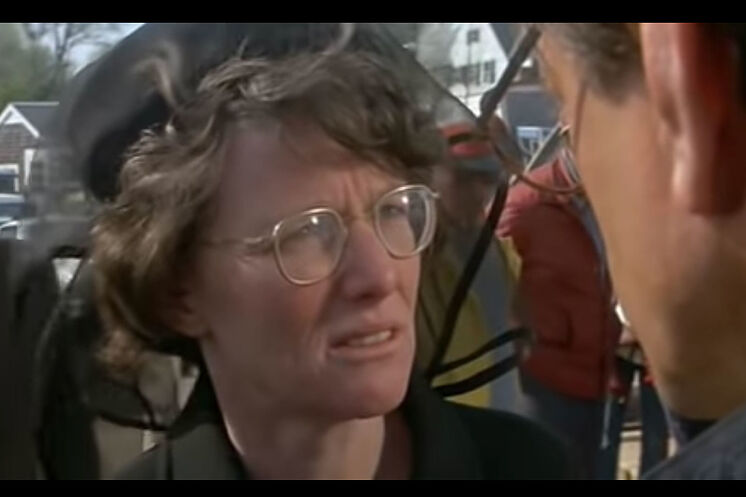 Según describe la nota, la Sra. Kintner airada e impotente luego de la muerte de su hijo Alex Kintner (Jeffrey Voorhees) increpa y le da una gaznatada al jefe de policía local Martin Brody (Roy Scheider) porque pudiendo haber prevenido la tragedia no lo hizo: “Usted sabía que había un tiburón suelto, sabía que era peligroso y dejó que la gente se bañara”, le recriminaba. “Mi hijo está muerto. Quería que lo supiera”.