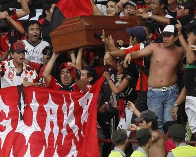Fanáticos ingresan en estadio cadáver en un ataúd