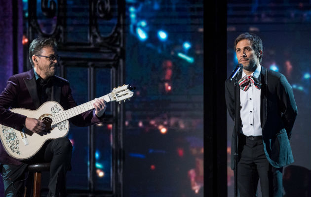 Con una voz trémula y un poco desafinada, el actor hizo la introducción acapella de la canción de 'Coco'. Luego, y de manera impecable, la interpretación siguió de la mano de Natalia Lafourcade y Miguel.