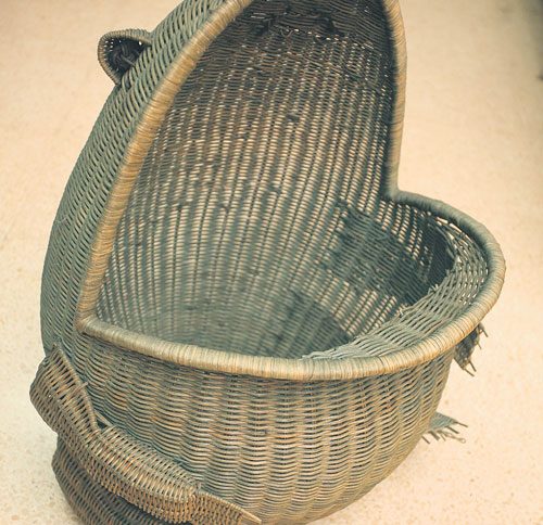 Las que estan confeccionada de alambre o ratán, tienen un lado plano, para colocarla en la pared como "floreros" para el recibidor, colocando en ellas un ramo de flores frescas o secas.
