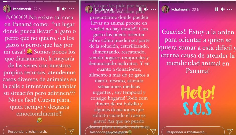 "No existe tal cosa en Panamá como: 'un lugar donde pueda llevar' al gato o perro que no quiero, o a los gatos o perros que hay por mi casa", escribió.