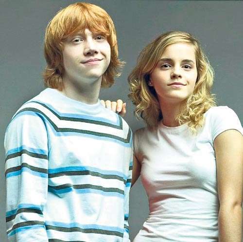 1. Rupert Grint y Emma Watson. Los actores Rupert Grint (Ronald Weasley) y Emma Watson (Hermione Granger) se ubicaron en este listado por su participación en la saga de películas de Harry Potter.