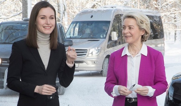 La presidenta de la Comisión Europea Von der Leyen y la primera ministra finlandesa Sanna Marin. Foto: EFE