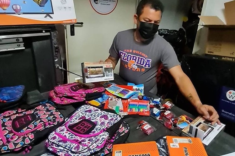 Una de sus últimas donaciones ha sido la entrega de útiles escolares.
