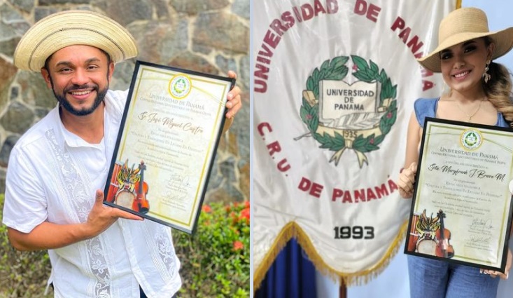 El presentador de televisión José Miguel Castro y la cantante Maryfrank Bravo recibieron un homenaje de parte de la Universidad de Panamá.