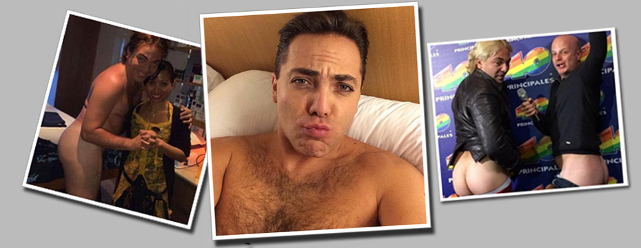 En el 2013 lo quemaron por las redes sociales por una foto donde posaba en un hilito de tanga con su masajista (foto izquierda).