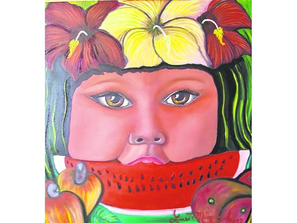 Las miradas y expresiones de los rostros de niñas y mujeres indígenas, de campesinas empolleradas te atrapan. Los colores vívidos que utiliza hablan de vida, energía, esperanza, variedad. Si es una fruta, pareciera gritarte: “¡cómeme!