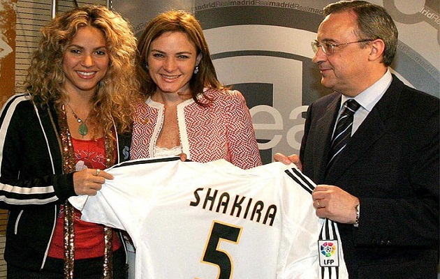 La foto en cuestión muestra a Shakira recibiendo de manos del presidente del Real Madrid, Florentino Pérez, la casaca blanca y en medio de ellos, la exprimera dama Vivian Fernández de Torrijos.