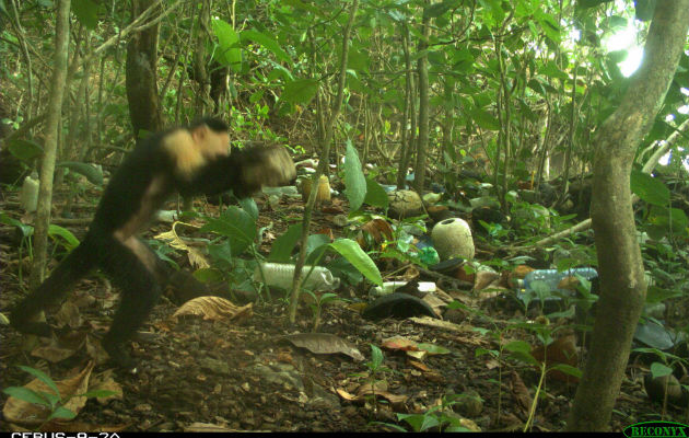 Según científicos visitantes del Instituto Smithsonian de Investigaciones Tropicales (STRI), los monos capuchinos en el Parque Nacional Coiba en Panamá habitualmente usan piedras para romper caparazones de cangrejos ermitaños, caracoles, cocos y otros alimentos. Este es el primer informe del uso habitual de herramientas de piedra por los monos Cebus.