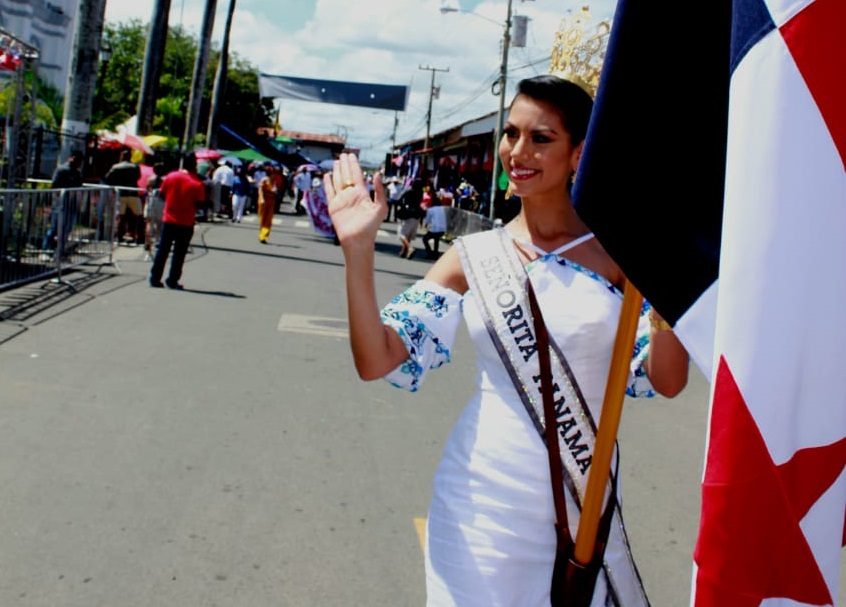La señorita Panamá 2018, Rosa Iveth Montezuma se paseó por las calles de la Villa de Los Santos para cumplir con la invitación de ser la abandera oficial de hoy 10 de noviembre.