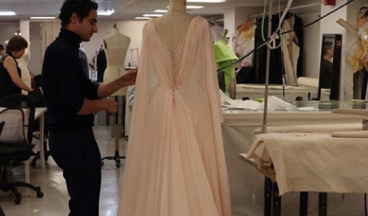En las nuevas imágenes se ve este diseño tan especial al descubierto, sobre el maniquí donde el modisto parecía trabajar ultimando pequeños detalles.