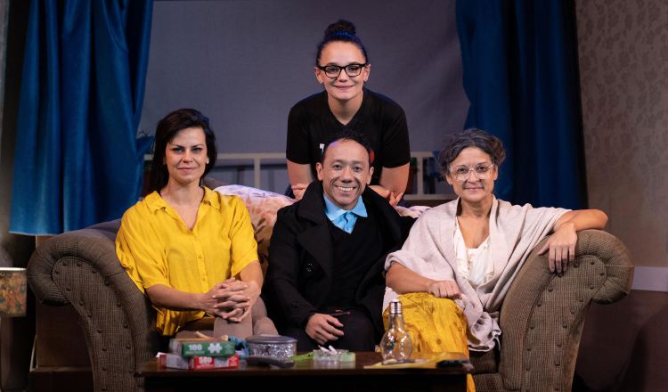 Direcctora y elenco de '100 metros cuadrados', en cartelera en Teatro La Estación. De pie, Mercedes Gintoli. Sentados: Yarelí Cartín, Abdiel Tapia y Enithzabel Castrellón. Foto: Cortesía.